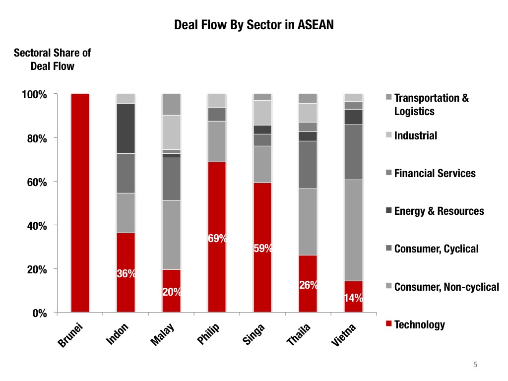 Venture Capital firms have been driving technology deals in Asia, as investments have jumped 6-fold in just 8 quarters from USD 1.3 billion in Q1-2013 to USD 8.5 billion in Q4-2014. Q1-2015 has been relatively modest with investments totalling USD 4.8 billion across 247 deals, and China, India and Japan accounting for two-third of all VC-backed tech deals in Asia. While year-on-year growth for the quarter still stands strong at 95%, we believe the technology-led startup landscape is experiencing a tectonic shift, and both start-ups and VCs will have to adapt to stay ahead of the curve. We take a deeper look at deal flow in ASEAN and highlight trends for the future.